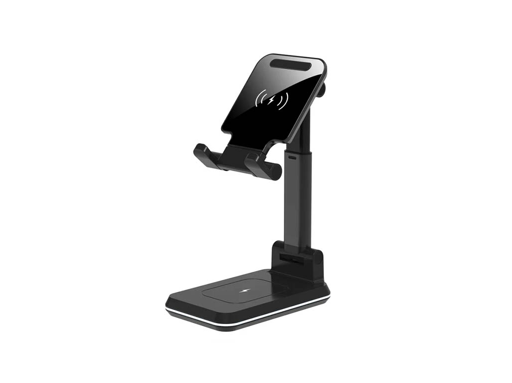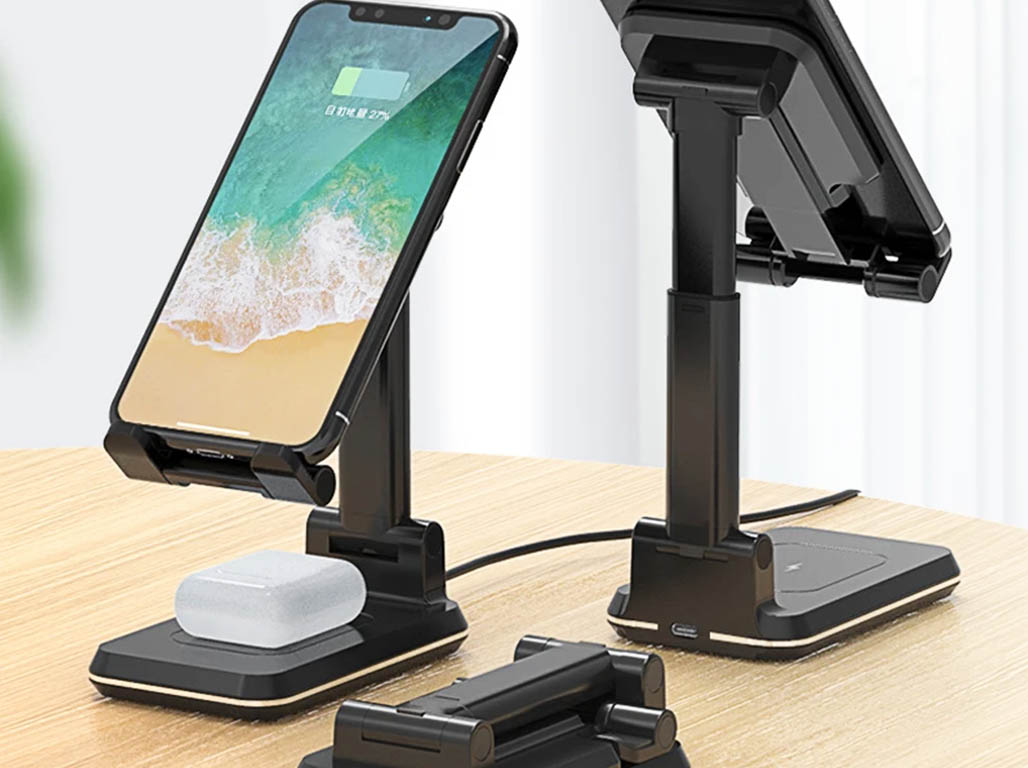 With dual coils and foldable design, the wireless charger can charge faster and is small and space-saving.It can be raised and lowered freely, adjusted in multiple angles according to the requirements. With a stable silicone anti-skid pad at the bottom, the foldable wireless charger gives stable support.The mobile phone stands with a foldable wireless charger supports mobile and tablet devices below 12.9 inches.