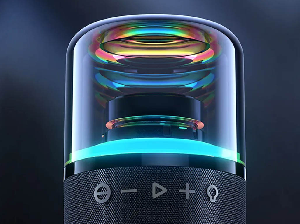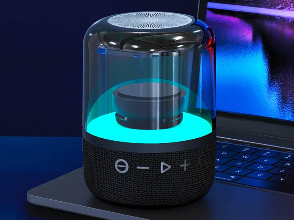 An LED Bluetooth Speaker with 360-degree surround sound and colorful RGB lights rhythm with music. The stunning high-saturation ring RGB light effect makes the music see multi-dimensional and makes you feel the charm of the music.