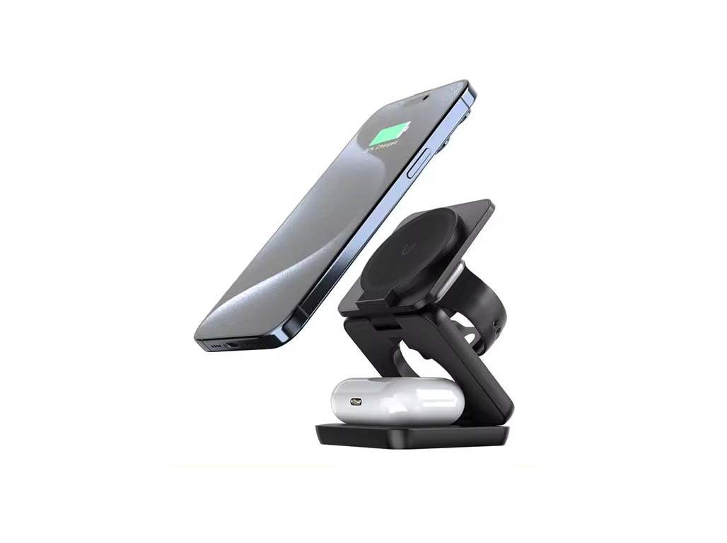 The ultimate wireless charging solution for your iPhone, AirPods, and Apple Watch. This 3-in-1 portable charger is slim and foldable, making it the perfect on-the-go accessory for your tech essentials. Say goodbye to messy cords and hello to effortless elegance.