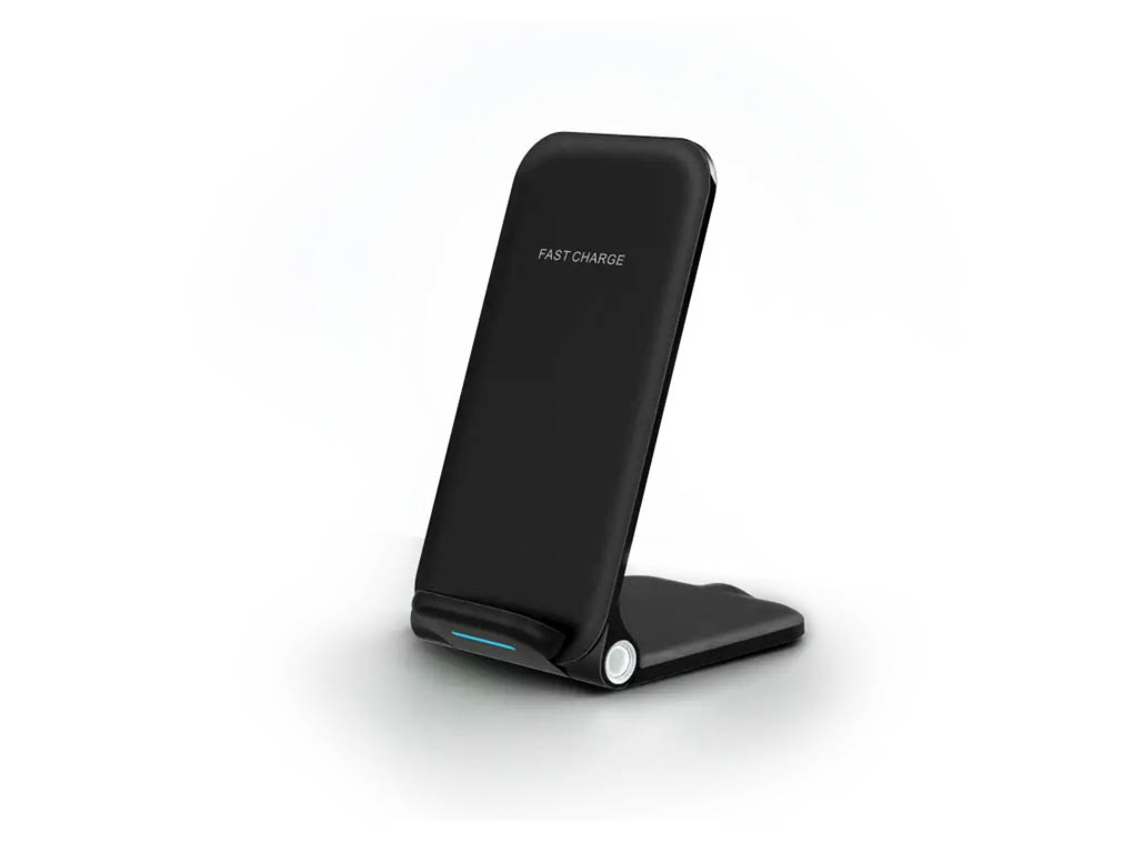 This 15W wireless charger has a foldable design that takes up very little space. Dual coil design ensures a wider charging area allowing one to charge the phone vertically or horizontally. It can be easily adjusted to different angles to obtain the best viewing effect and can be charged at any angle.