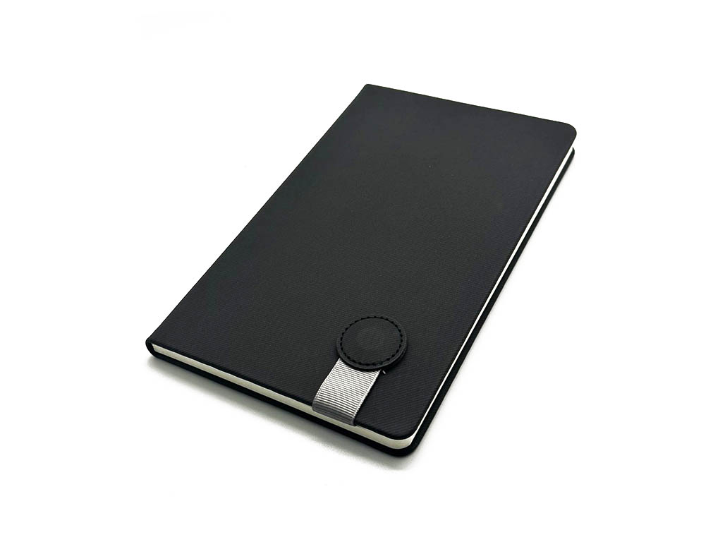 • A5 hardcover notebook with rounded corners and magnetic strap that is made of PU Leather
